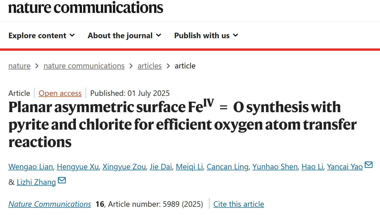 環(huán)院智慧|張禮知團隊發(fā)文報道平面非對稱高價鐵合成及其高效氧轉(zhuǎn)移反應
