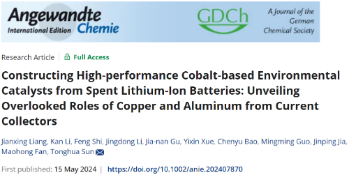 環(huán)院智慧 | 賈金平團隊Angew. Chem. Int. Ed.發(fā)文揭示廢舊鋰電池中集流體元素對資源化環(huán)境催化劑的影響機制