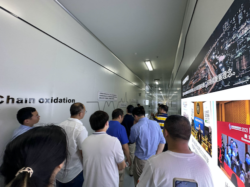 接著,實(shí)踐團(tuán)前往晶科能源股份有限公司,參觀晶科能源電池智能工廠。晶科能源股份有限公司聚焦光伏產(chǎn)品一體化研發(fā)制造和清潔能源整體解決方案,在行業(yè)中率先建立了從硅片、電池片到組件生產(chǎn)的垂直一體化產(chǎn)能,產(chǎn)品服務(wù)于全球160余個(gè)國(guó)家和地區(qū),多年位列全球組件出貨量冠軍。通過(guò)公司展廳的介紹,實(shí)踐團(tuán)了解了光伏電池的歷史沿革、主要研究方向和技術(shù)成果。在電池智能工廠中,實(shí)踐團(tuán)參觀了電池智能生產(chǎn)線,了解電池從原硅片進(jìn)行制絨、擴(kuò)散、激光SE、堿拋、背膜等工藝,最終制成電池組件的全過(guò)程。