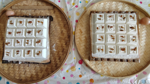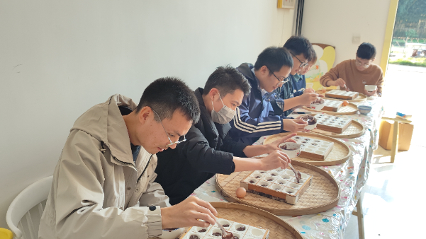 隨后,師生黨員們體驗了制作米糕的方法與過程。將糯米磨成米粉,加入新鮮的紅豆泥作為餡料,用葡萄干點綴,最終通過蒸制做出口感細膩、香甜可口的米糕。體驗傳統(tǒng)手工制作的環(huán)節(jié)培養(yǎng)了師生們的耐心和細心,更增強了勞動意識和團隊協(xié)作精神。
