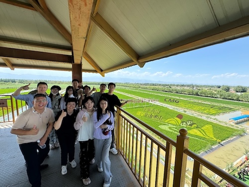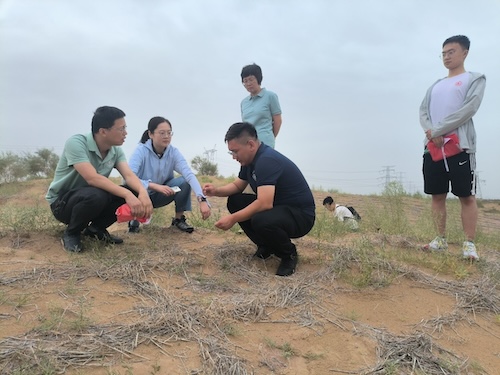開營儀式后,實踐團前往沙漠進行考察。寧夏擁有近70年的治沙歷史,實現(xiàn)了讓沙漠倒退20余公里的壯舉,為世界貢獻了中國經(jīng)驗。師生團隊在現(xiàn)場對“人進沙退”的寧夏治沙成果表示驚嘆。