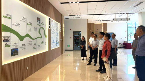 隨后,屈計寧等人參觀了綠色環(huán)境樓和生態(tài)環(huán)境科普基地。曹心德、耿涌向來訪人員介紹了環(huán)境學院公共空間建設(shè)理念及學院發(fā)展情況。于曉娟介紹了科普基地的建設(shè)理念和內(nèi)容設(shè)置,特別是如何將抽象的生態(tài)環(huán)境科學知識轉(zhuǎn)化為直觀可感的體驗,激發(fā)參觀者對生態(tài)環(huán)境的熱愛與關(guān)注,進而引導公眾積極參與到生態(tài)環(huán)境保護的行動中來。