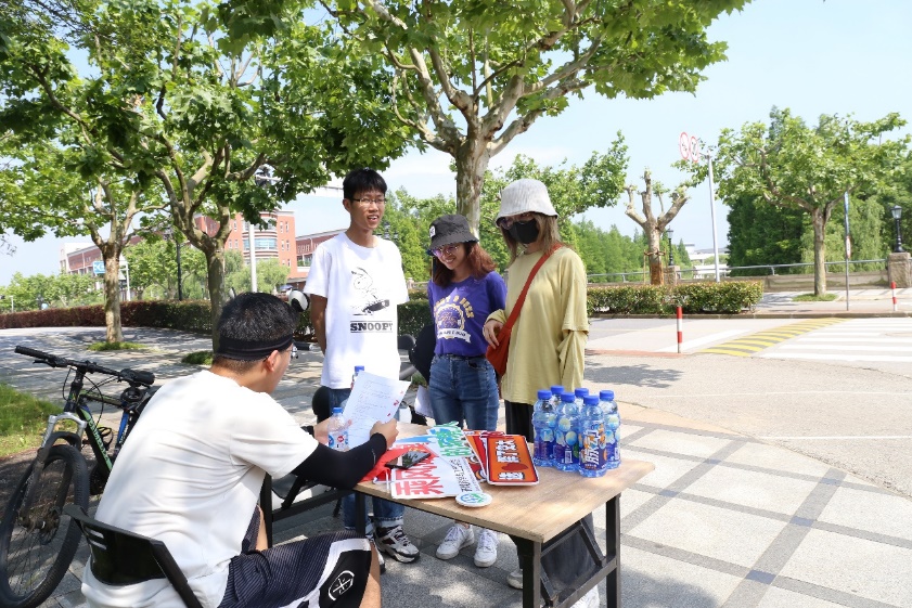 結(jié)束兩個(gè)打卡點(diǎn),同學(xué)們便來(lái)到此次定向越野的終點(diǎn)——環(huán)境科學(xué)與工程學(xué)院門(mén)口,完成打卡并領(lǐng)取獎(jiǎng)品。