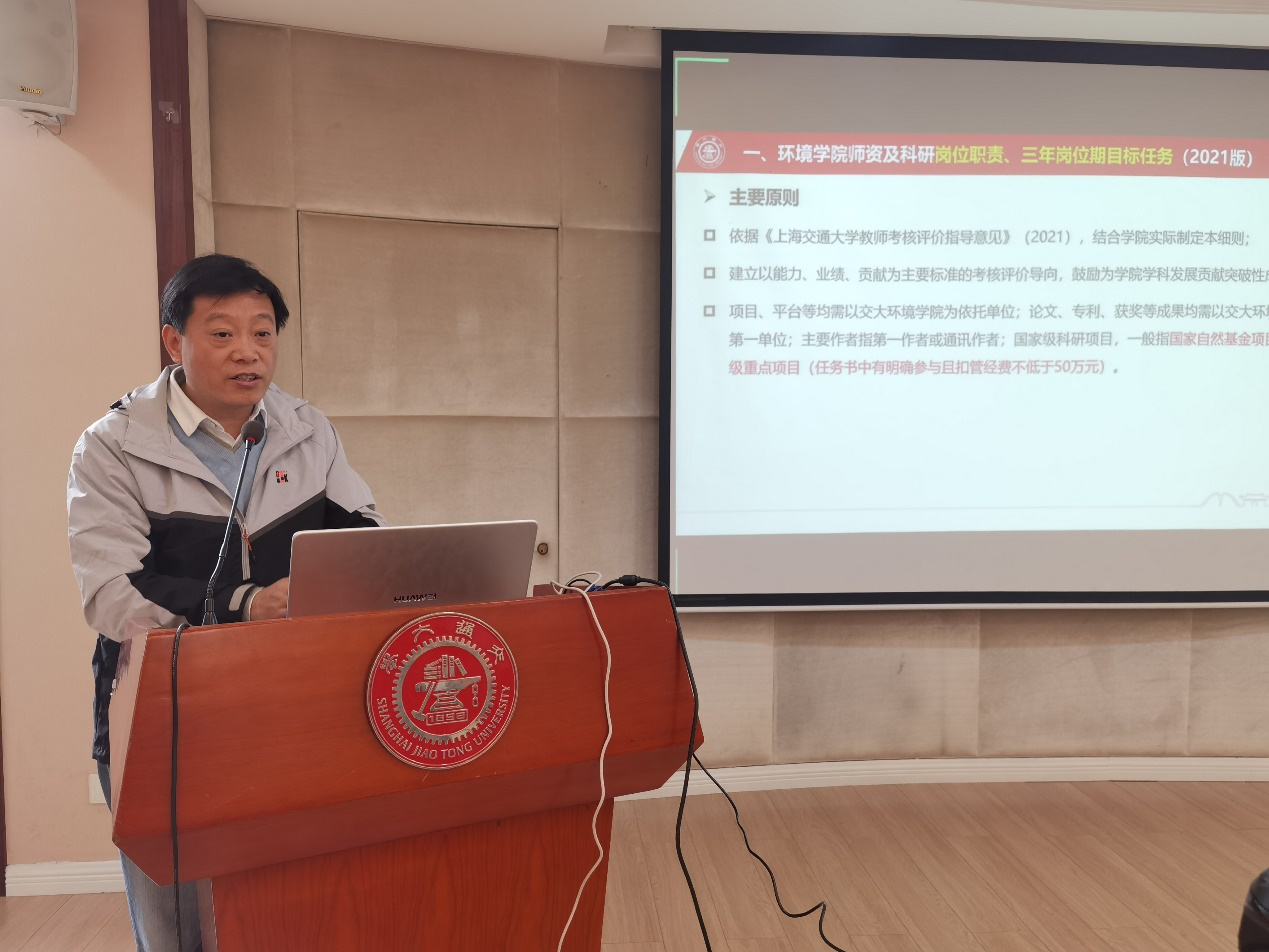 環(huán)境學(xué)院黨委副書記、工會主席何圣兵代表學(xué)院向與會代表解讀了新修訂的《環(huán)境學(xué)院師資及科研崗位職責(zé)、三年崗位期目標(biāo)任務(wù)(2021版)》、《上海交通大學(xué)環(huán)境科學(xué)與工程學(xué)院教職工聘期考核管理辦法(審議稿)》、《上海交通大學(xué)環(huán)境科學(xué)與工程學(xué)院師資及研究隊伍高級專業(yè)技術(shù)職務(wù)聘任實施細(xì)則(審議稿)》、《上海交通大學(xué)環(huán)境科學(xué)與工程學(xué)院長聘教軌教師晉升管理規(guī)范(審議稿)》文件。與會代表認(rèn)真審議了文件并現(xiàn)場無記名投票表決,原則上同意上述修訂的文件內(nèi)容。